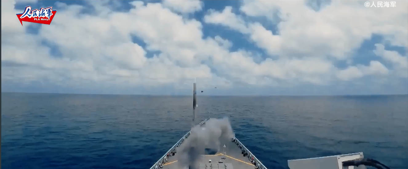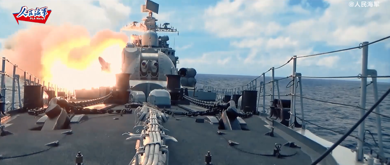 图片说明:现代级发射“日炙”超音速反舰导弹 视频截图