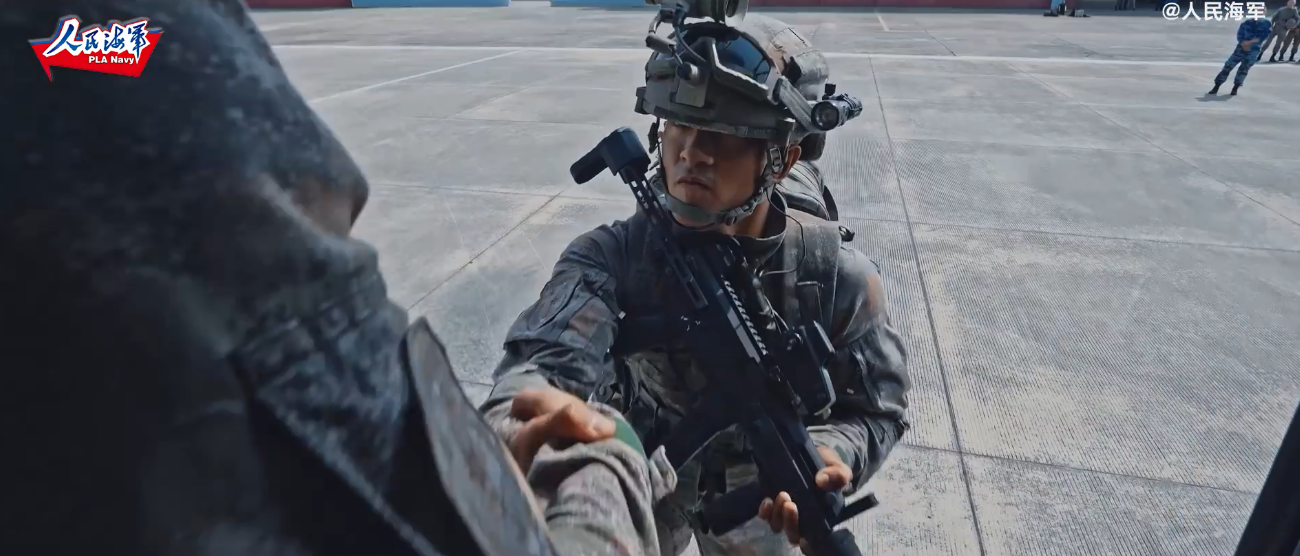 在宣传片中,出现了蛟龙特战队员手持此前在新中国成立70周年阅兵式中首次公开亮相的国产新型步枪。