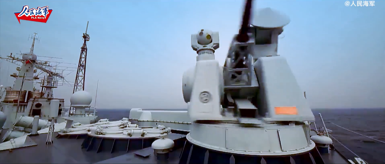 图片说明:052C型导弹驱的垂发和近防炮 视频截图