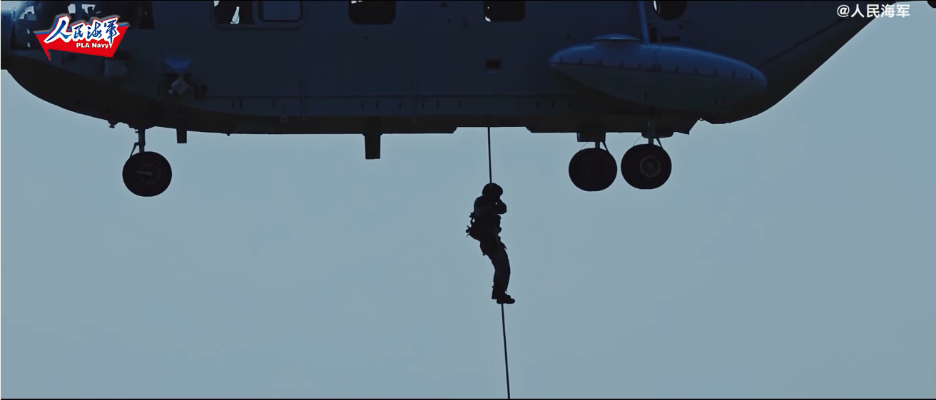 宣传片中,介绍了中国海军陆战队的王牌部队,被人们誉为“海上蛟龙,陆地猛虎,空中雄鹰,反恐精英”的中国海军特种部队“蛟龙突击队”。