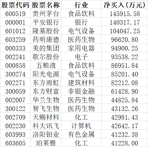 北上资金本周买入居前的个股。