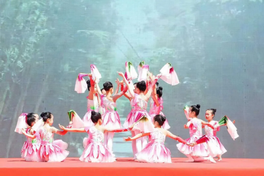 这场90多分钟的六幕主题情景剧,以新冠肺炎疫情中的共产党员奔赴一线做“大白”为故事开端,从儿童的视角去理解和摘取百年党史中的精彩瞬间,诠释共产党员一心一意为人民服务的家国情怀。既有各时期的重要历史事件、优秀党员故事,也有红色经典歌曲、艺术家代表作、科技重大发展事件等。情景剧融合了戏剧展演、歌舞表演、器乐演奏等多种艺术形式,福山外国语小学的合唱团、舞蹈团、武术社、戏剧社等十多个学生社团一一亮相,有艺术特长的教师也和孩子们同台献演。