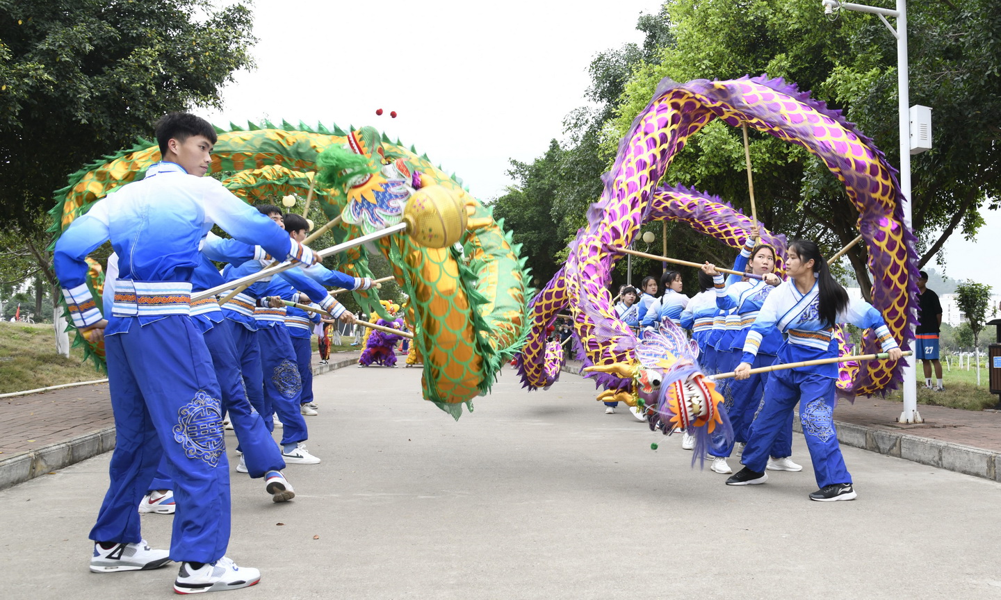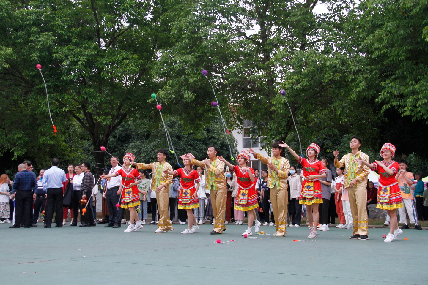 当天下午,艺术节在独具壮韵风情的“壮乡三月迎宾朋”中热闹开幕,敬酒、献绣球、多耶舞、舞狮舞龙等民俗活动相继开展。青春靓丽的民师学子们在人工湖和桥上悠扬对歌,在格桑花海前唱起《广西尼的呀》《唱支山歌给党听》等经典歌曲。活动现场还设置有打榔体验、东盟文化体验、民族语言体验、“我与民族服饰合个影”、独竹漂表演、民族工艺体验等多种富有趣味和民族特色的体验活动,让现场观众对少数民族非物质文化遗产有了更亲密的接触和深刻的了解。此外,“民族美食齐品尝”“民族体育喜观赏”等活动也陆续开启,带你尝遍正宗地道的各民族特色美食,领略抛绣球、打陀螺、高脚马、板鞋等民族体育比赛的扣人心弦。在民师院的文化长廊,“文化旅游共推介”活动中,大家一起分享边关红色故事,一起参与崇左市民俗文化、红色文化知识竞猜,通过“壮族三月三 魅力崇左行”文化旅游路线,一起“云”游崇左。