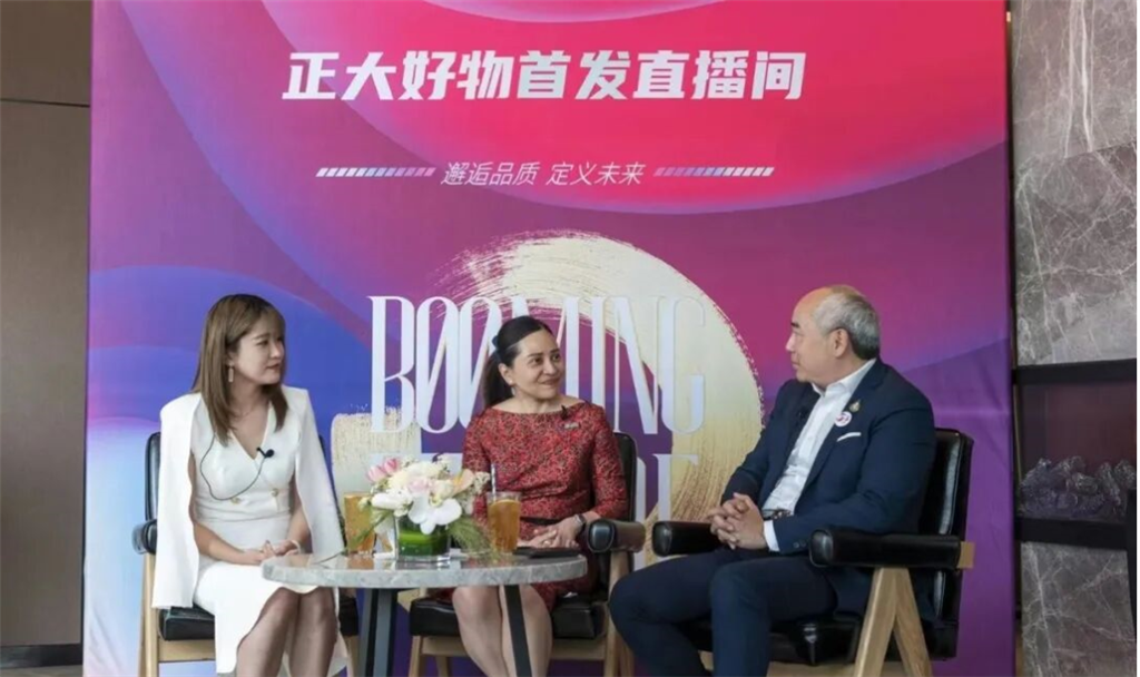 东方网通讯员徐伟杰5月3日报道:受正大集团副董事长罗家顺先生邀请,泰国驻沪总领事乐达·普玛女士参加首次打造的“全球好物首发直播间”活动,通过直播形式向消费者推介正大广场的泰国好物。