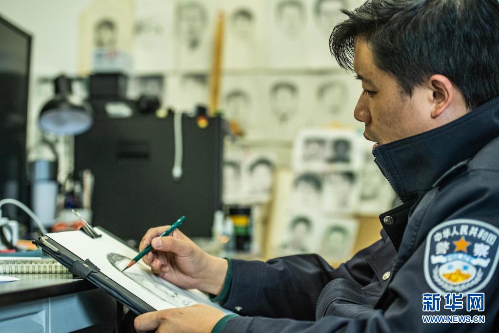朱允宏在绘制嫌疑人画像(5月2日摄)。新华社记者 陶亮 摄