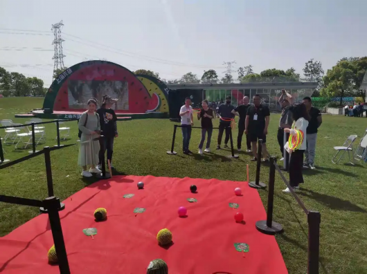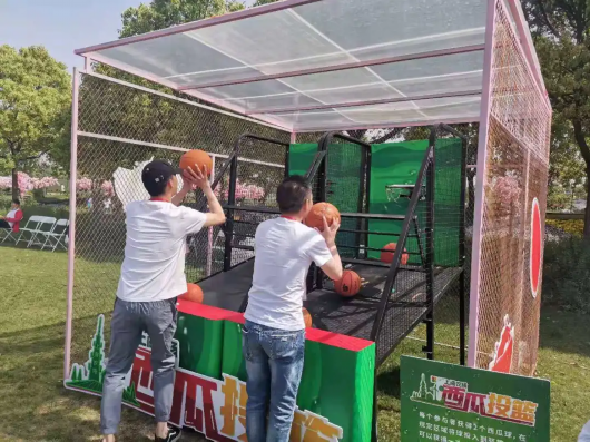 除了品尝西瓜,现场还设置了互动游戏环节,套圈、投篮、掷飞镖、猜重量……