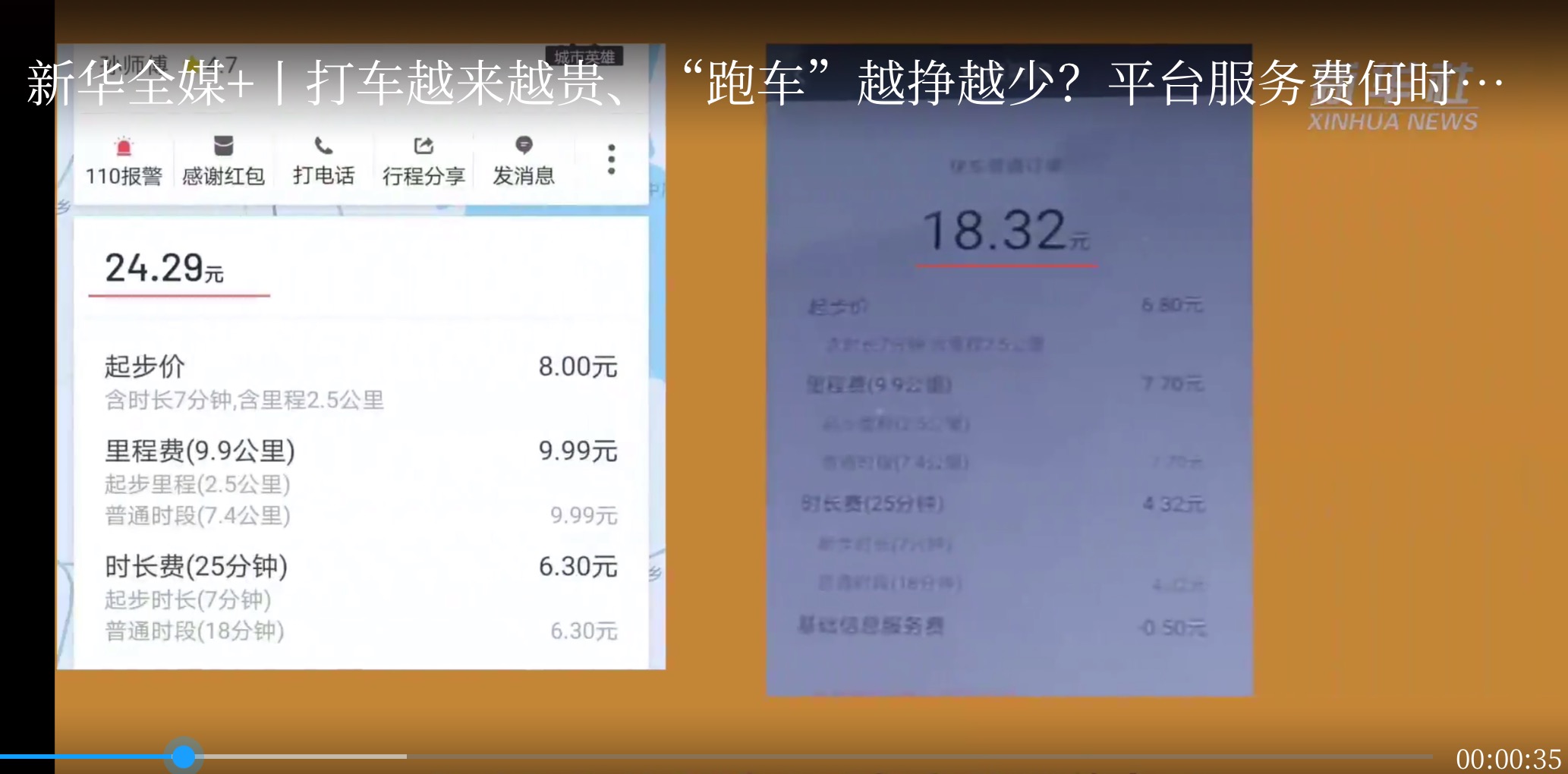 同一个订单下,司机账单和乘客账单的显示价差。图据新华社视频
