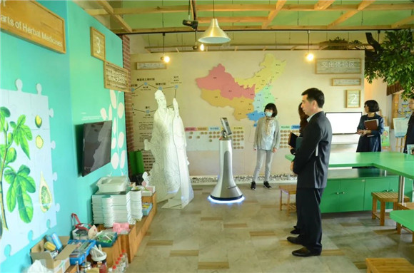 来宾们首先参观了校园,走访中草药科普实践馆和“培乐多”草药屋,有趣的VR交互设备吸引了来宾老师的目光,孩子们自己训练的“高科芯”机器人讲解员已经能够向来宾做导览和问答互动。利用人工气候箱做实验,探究提高番茄甜度的方法,让传统文化气息浓厚的中草药科普实践馆增添了科创的气息……一楼大厅的“高科才富成长营”奖品兑换机还展现了操作简单、富有激励性和引导性的课程评价系统,得到了来宾的阵阵赞叹。
