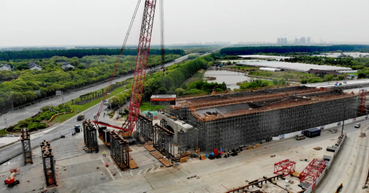 此次吊装顺利完成,加快了跨临港大道段高架主体结构贯通的步伐,进一步保障新片区高标准、高质量、高效率的建设发展,助力两港大道快速化北段实现6月30日通车。