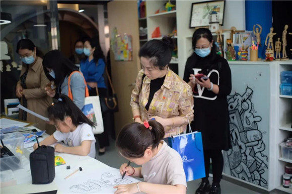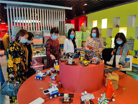 瞧,孩子们一个个创造小发明,透露出浓浓的艺术气息,体现出孩子们在和田路小学乐园里幸福地探寻、成长。沿着星光广场、创意长廊,老师们参观了“创造”大楼。教学区的过道走廊,整个设计充满创造性和艺术性,学生作品装饰着过道、美化墙壁文化……学校把创造教育理念融入到了一草一木、一砖一瓦之中,让人真切感受到校园里无处不在的“创造”气息。