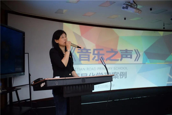 倪老师详细分享了两个项目化学习案例:《音乐之声》、《地震来了怎么办》。通过案例的背景、设计、过程以及成果的展示等的介绍,让我们清晰地看到了和田路小学项目化学习的驱动与发展。倪老师提到,学科特色的项目化学习也是重要一个推动。从这些有趣、有益的活动中,让学生有更多的实践去体会、去感知,从而帮助每一个学生发现自己、成就自己,让每个孩子都可以成为“创意大师”。
