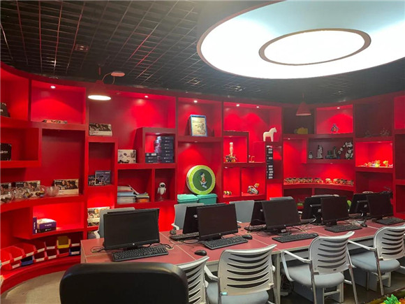 在创造大楼,有个“创造学院”,这是和田师生创造的殿堂,是见证奇迹的魔力所在。整个“创造学院”设计精致,充分利用每处空间,主题突出。信息功能室充满现代科技感,所有座位设计呈流线型,富有灵动。动画工作室艺术感十足。随后来到集借阅图书、修炼再加博物馆为一体的魔力空间,可以自主借阅的图书阅览室,古色古香的书法教室、社交茶室、中国文化特质的实物展览……