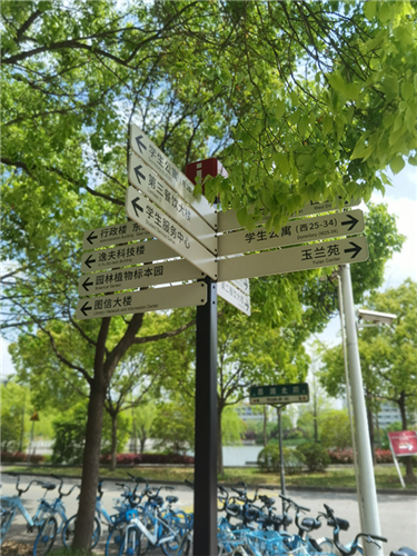 校园里现有的导视牌设置时间不同,形态差别较大,缺乏一个整体的标识系统,且随着校园的不断扩大、改建,也陆续出现了破损、缺失、指示信息不全等问题。为此,在学校“双一流”项目的支持下,启动了整体更新的工作。目前导视牌一期的建设已经完工,涉及标识牌种类有:校门处设立的全校地图导览牌、校园内带地图的多项复合指引牌、风向标指引牌以及少量停车指引牌。这些标识牌遍布校园的重要节点角落,在方便师生的同时,也成为校园里的一道新的风景。
