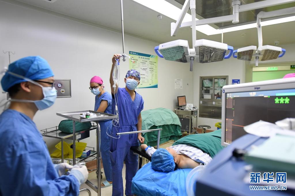 5月10日,福建中医药大学附属第二人民医院主管护师张志恩(中)在手术中给医生传递器械。新华社记者 林善传摄