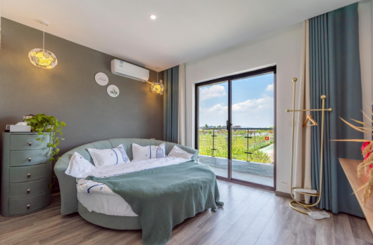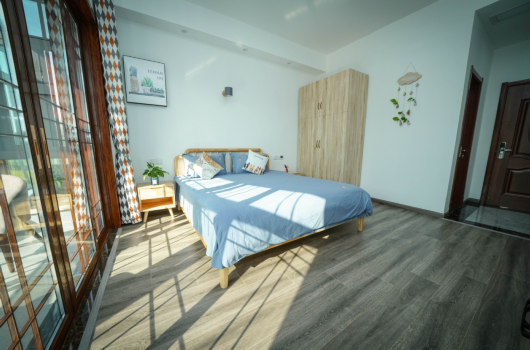 一栋楼内共四间房,每间都有独立的卫浴,每间房都有大窗户,不仅增加了采光,而且拉开窗帘就是湖畔美景,让人心旷神怡。