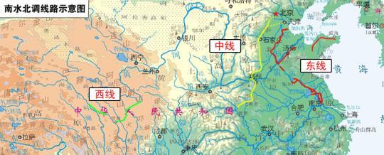 南水北调工程分东、中、西三条线路