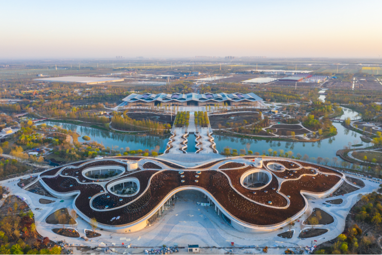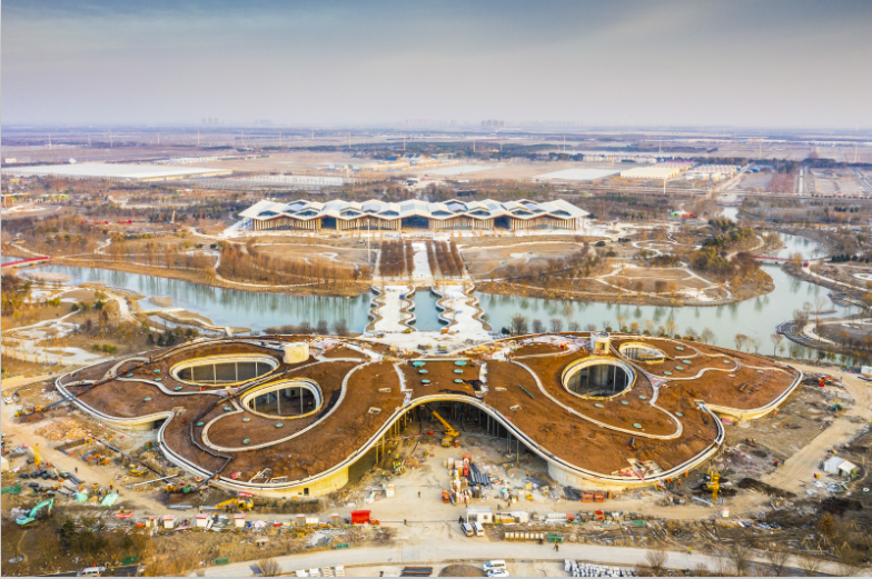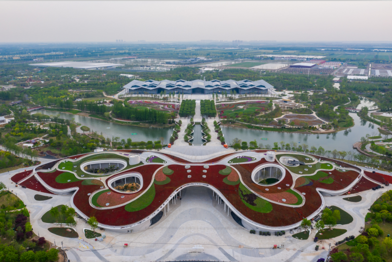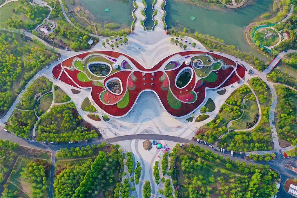 花博园里项目众多,百米紫藤长廊、百樱林、大师园、菊园、兰园、荷园……建设伊始,面对一大片的开发土地,王华连园馆位置在哪里都没有概念。此后,王华几乎每天都窝在花博园里,一待就是12个小时,厘清场馆分布、找准取景角度、观察光影变化……随着时间的推进,花博园的轮廓越来越清晰,整体勾勒出一朵美丽繁盛的牡丹造型;世纪馆形如展翅欲飞的蝴蝶;复兴馆、百花馆、花栖堂也渐渐成形,王华用相机定格着园区日新月异的变化,捕捉着值得被记录的细节。