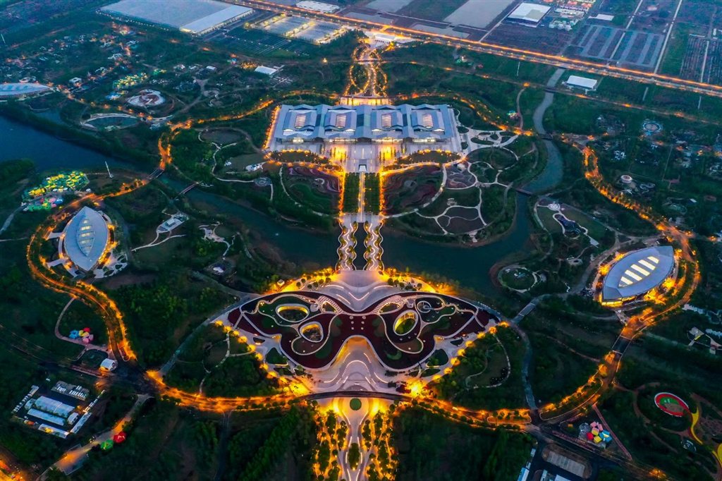 近日,第十届花博会园区进行了多轮灯光测试,夜幕降临,灿若星河的灯光勾勒出花博园区绚丽的夜景。