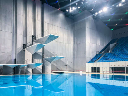 游泳馆,为亚运会游泳、跳水、花样游泳项目比赛场馆及训练场馆,位于杭州奥体中心北端。总建筑面积53959平方米,约6000座,是一个集游泳跳水比赛和训练为一体的专业运动场馆。