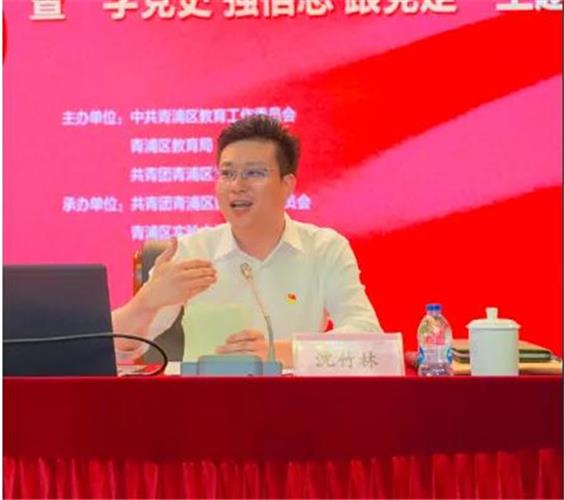 共青团青浦区委书记沈竹林为学生们带来了一节《百年党史里的“青春范儿”》主题团课。