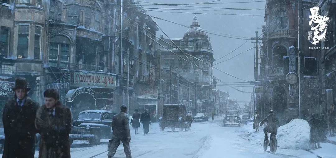 俊霊:有去搜集一些跟项目有关的资料,比如说哈尔滨的一些老资料、老照片。还有看了剧本之后,根据自己的理解去找一些气质类似的电影。比如说当时我找的有《毁灭之路》、《锅匠,裁缝,士兵,间谍》等等,当然也包括电视剧版《悬崖》等影片资料。印象深刻的应该是一些旧影资料。我们自己是画概念的,其实有同事也会在前期一起搜集大量的资料,当时他们找到了很多哈尔滨的旧影录像,对于我们这个片子是很好也比较准确的参考。