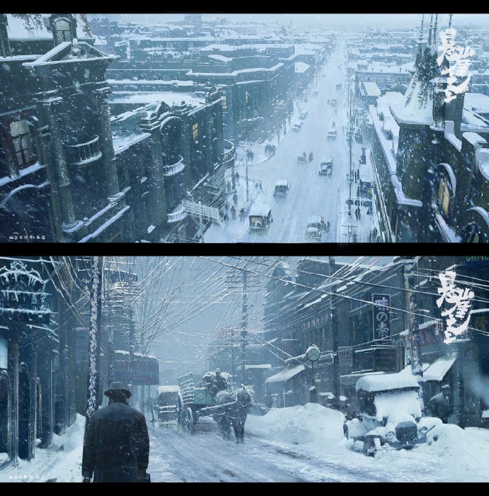 韩浩:我们没有直接跟他有交流,通常对接的是美术指导。美术指导跟导演编剧沟通,再传达剧组的需求,其实属于一种间接的合作。我觉得张艺谋是一个特别注重视觉表达的导演,他追求一些极致的美。比如说这次《悬崖之上》是在哈尔滨上演的一个故事,极致的大雪,全片冷冽感,所以我们在画图中也是追求这种气质和感觉。