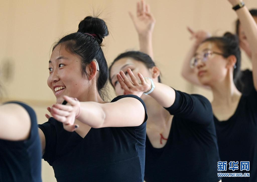 天津理工大学聋人工学院的舞蹈队员们在学院的排练厅里练习(5月8日摄)。新华社记者 李然 摄