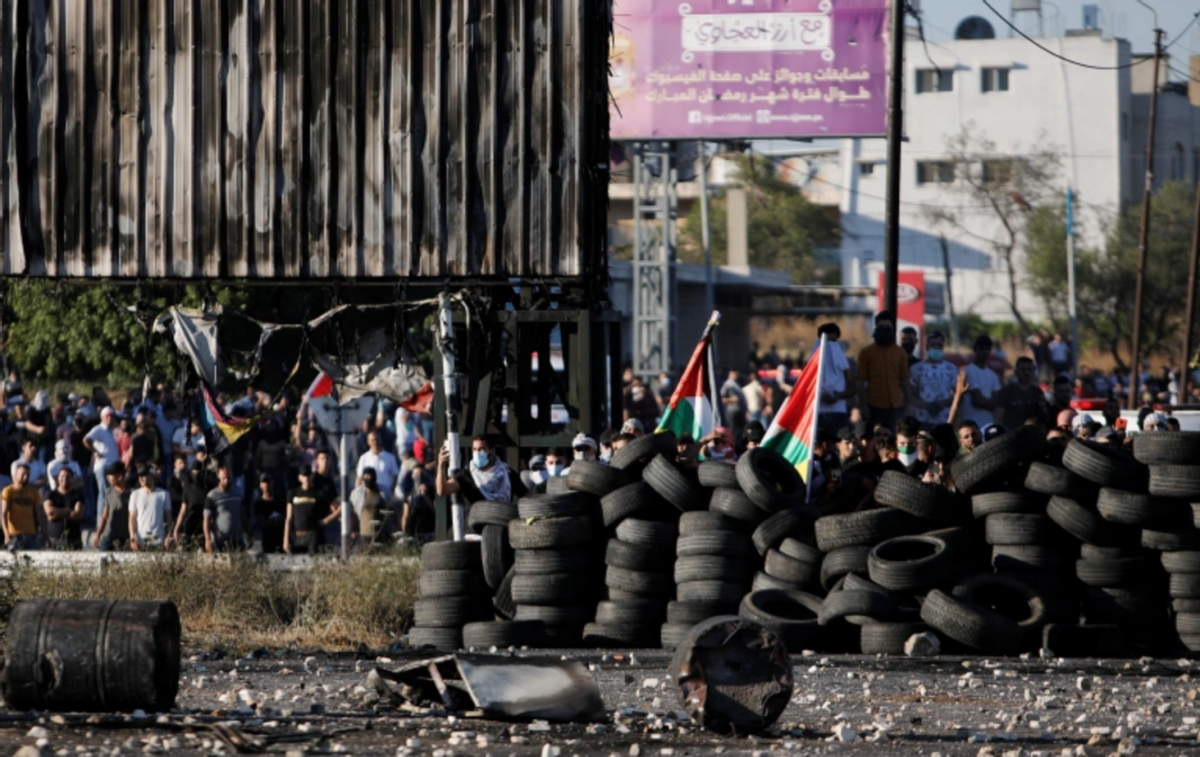 (图说:约旦河西岸纳布卢斯市,巴勒斯坦人在一座检查站附近抗议。图/Reuters)