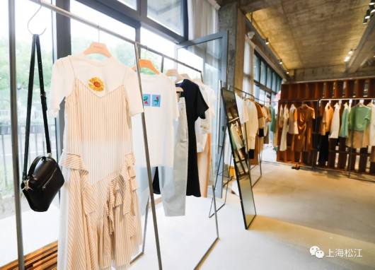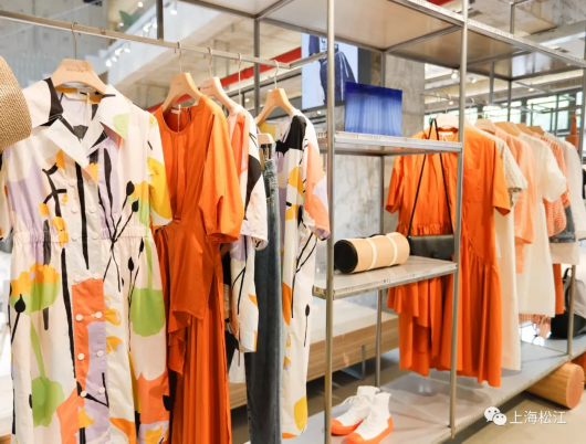 走进充满工业风的大楼,映入眼帘的就是陈列整齐的服饰。货架上挂着缤纷的夏季服饰。女士连衣裙、上衣、裙裤等种类丰富。清爽的颜色、简单大方的剪裁让人一看就倍感舒适。