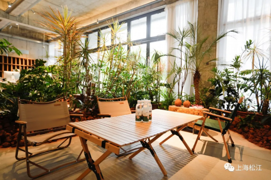 帐篷、野炊、沙滩……有别于其它工厂店,这里经过特别设计布置,结合野营、丛林等元素,打造了独特的工业风。“许多女性顾客带着孩子前来购物,这里就变成遛娃地了。”负责人说。