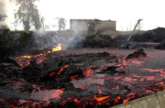 2002年1月18日,刚果(金)北基伍省首府戈马一所房子被熔岩吞没。新华社/美联