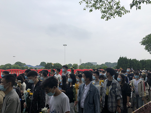 24日7时许,明阳山殡仪馆就聚集了不少人,大部分都是前来送别袁隆平的群众。至9时许,前来送别的人排成了长队,从殡仪馆的门口一直排到明阳厅。直到12时许,人流才慢慢散去。