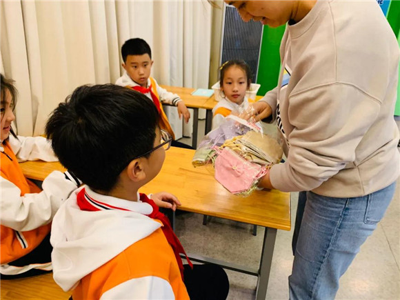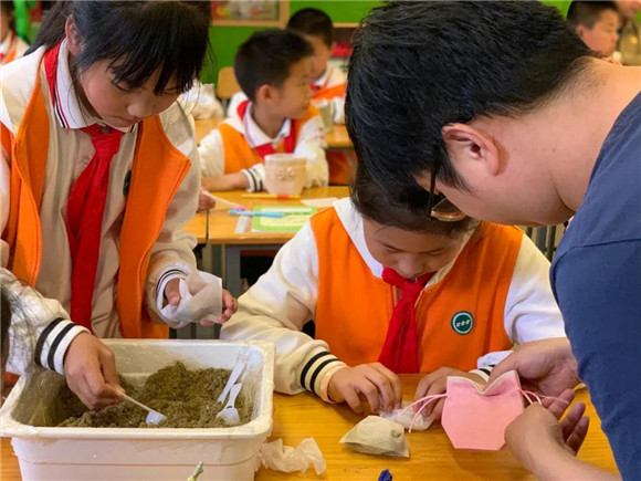 学习了这么多知识,该轮到我们动手做一做啦!蒋老师为大家讲解了制作香囊的过程,这次的课上,我们也来动手做一个简易的中药香囊。