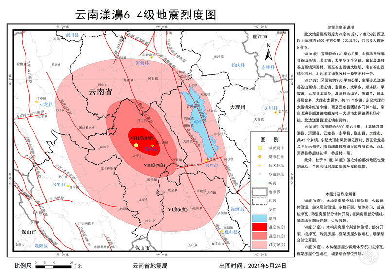 云南漾濞6.4级地震烈度分布图公布:最高烈度8度