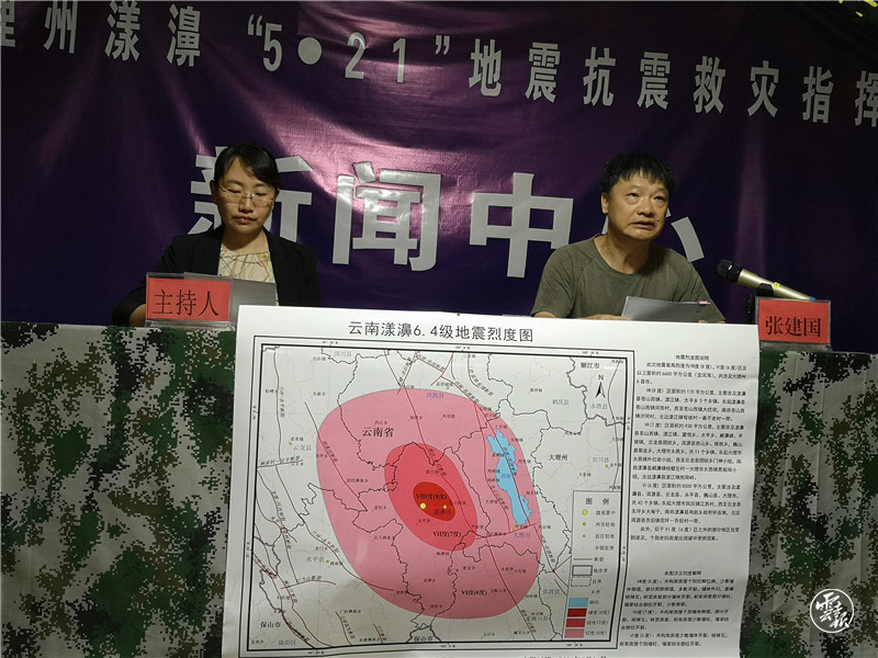 5月25日上午,大理州“5·21”漾濞6.4级地震抗震救灾指挥部新闻中心第五场新闻发布会在漾濞举行。经报请应急管理部、中国地震局同意,云南省地震局发布云南漾濞6.4级地震的烈度分布图。主发布人云南省地震应急服务中心总工研究员、地震系统现场指挥部灾评组组长张建国。