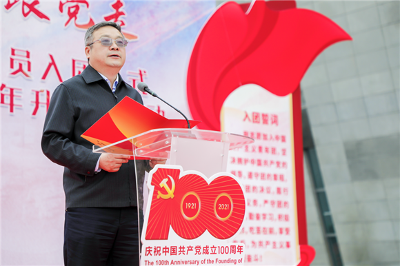 他希望广大新团员,要认真学习党史,赓续共产党人精神血脉,让红色基因、革命薪火代代相传,用自己的青春、勇气和担当去书写无愧于时代的壮丽篇章!