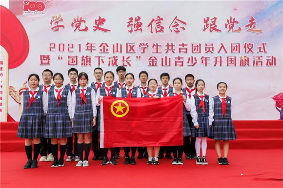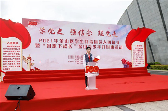 为庆祝中国共产党成立100周年,引导广大青少年学好百年党史,坚定理想信念跟党走,5月22日上午,由金山区教育工作党委、团区委主办,区教育工作团委、区教育党群服务中心承办的“学党史、强信念、跟党走”2021年金山区学生共青团员入团仪式暨“国旗下成长”金山青少年升国旗活动在金山区博物馆南广场举行。