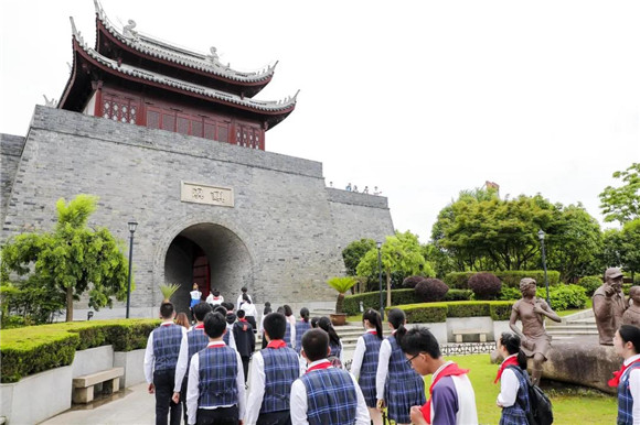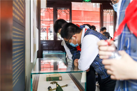 仪式后,百位新团员代表寻访“金山卫抗战遗址纪念园→张堰南社”红色精品线路,实地探访打卡,接受“沉浸式”精神洗礼,切身感受红色城市的荣光,让百年党史深入“青年心”。