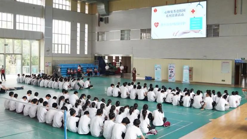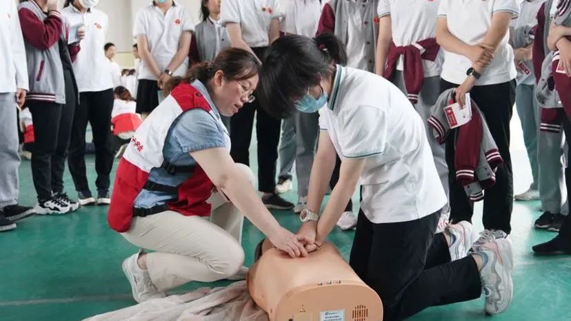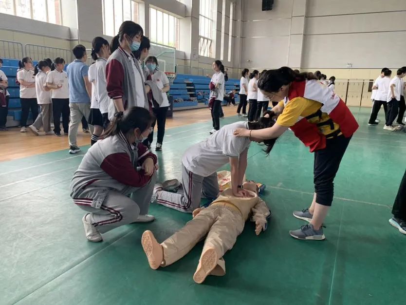 这是宝山区红十字会、宝山区红十字医院(复旦大学附属中山医院吴淞医院)、吴淞中学、吴淞街道红十字会联组开展的“救在身边•校园守护——心肺复苏进校园”主题活动。在为期三期的活动中,吴淞中学已有近360名高一学生完成了8课时的培训,通过考核并拿到了应急救护普及培训合格证书。