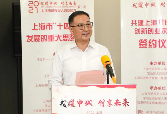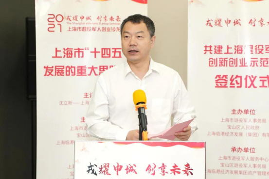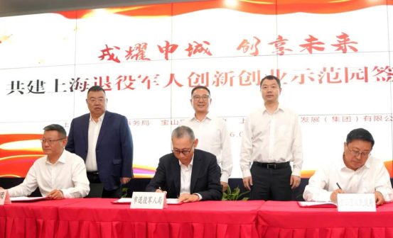 6月9日上午,宝山区政府与市退役军人事务局、上海临港经济发展(集团)有限公司,在上海宝山新业坊·源创举行共建上海退役军人创新创业示范园战略合作签约仪式。上海市退役军人事务局党组书记、局长黄冲,宝山区委书记陈杰,临港集团党委书记、董事长袁国华出席仪式并讲话,上海市退役军人事务局党组成员、副局长屈新平,宝山区副区长倪前龙,临港集团总裁吕鸣共同签署《共建上海退役军人创新创业示范园合作协议》。