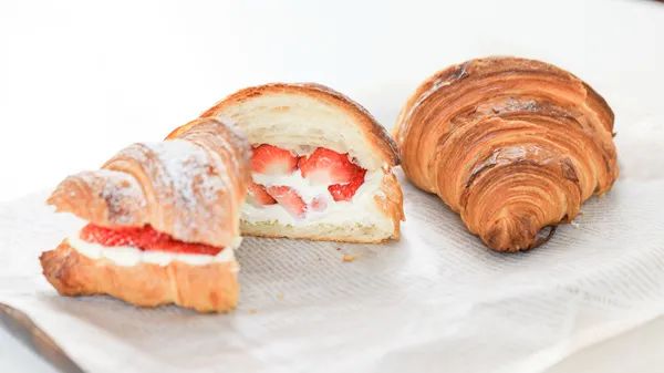 松软酥脆的牛角表面撒上糖霜,一口下去大大的满足。