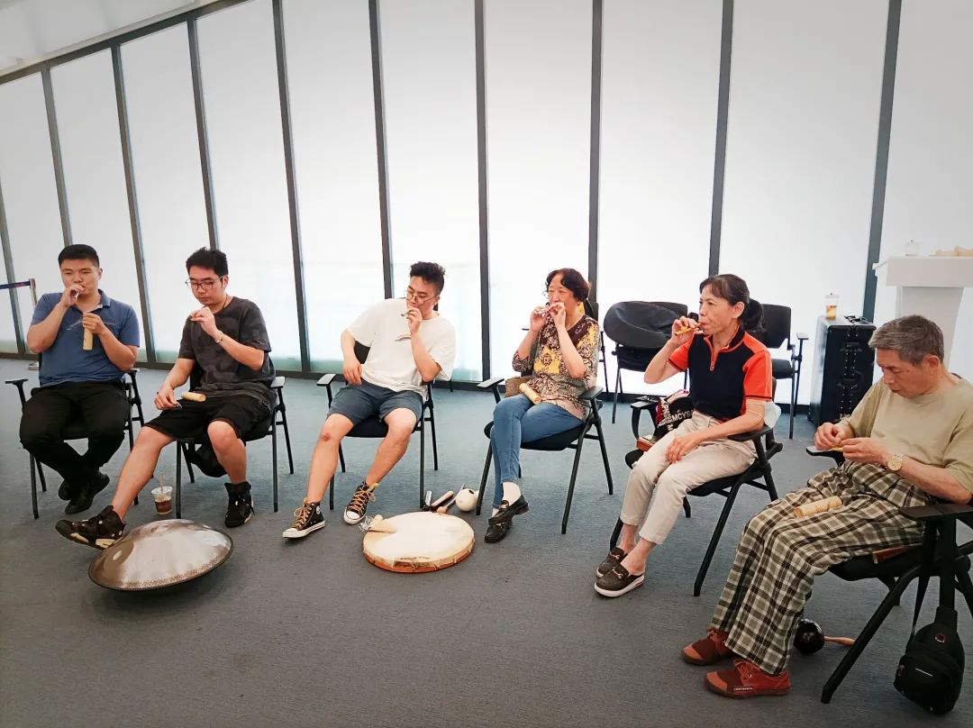 在换了几组不同的乐器后大家短暂地休息,使用大乐器的参与者感叹着好像完成了一场酣畅淋漓的锻炼,而小乐器的使用者仿佛被催眠了一样舒适安宁。
