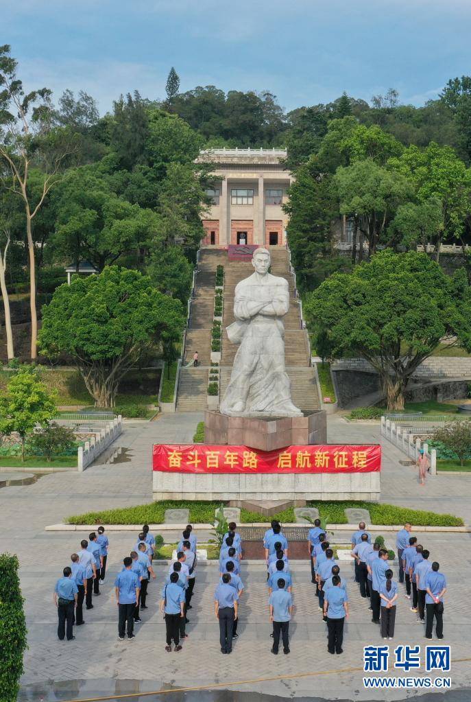 6月16日,党员干部在林祥谦烈士陵园参加党史学习教育(无人机照片)。