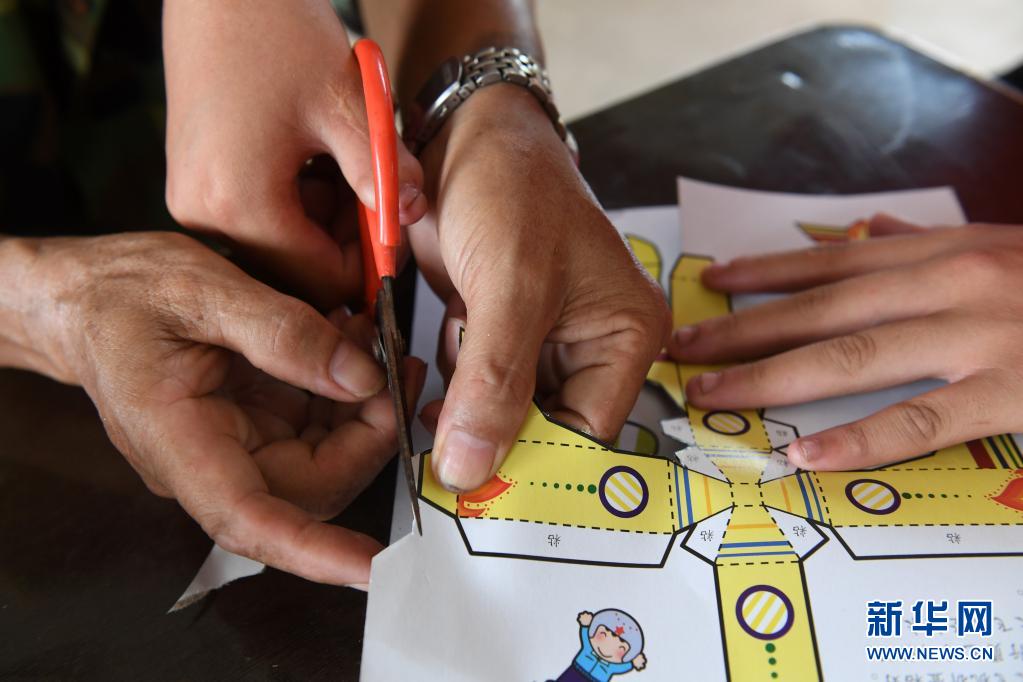 在广西上思县那琴乡中心小学逢通村教学点,梁志雄老师在教学生做手工(6月16日摄)。新华社记者 陆波岸 摄