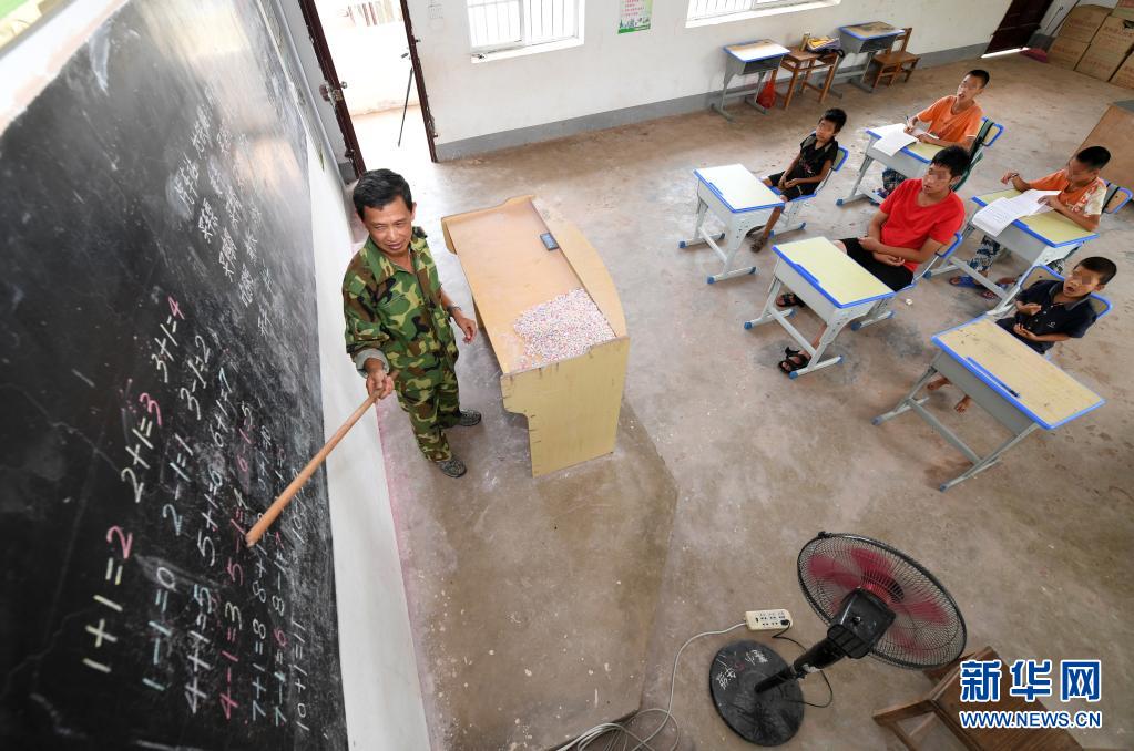 在广西上思县那琴乡中心小学逢通村教学点,梁志雄老师在给学生上课(6月16日摄)。新华社记者 陆波岸 摄