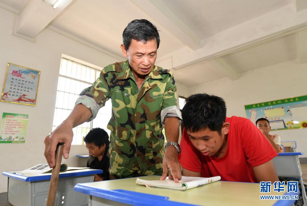 在广西十万大山北麓莽莽群山间,61岁的退休党员教师梁志雄,继续坚守已经站了40多年的讲台,演绎着一名老师陪伴五名残障学生的感人故事。