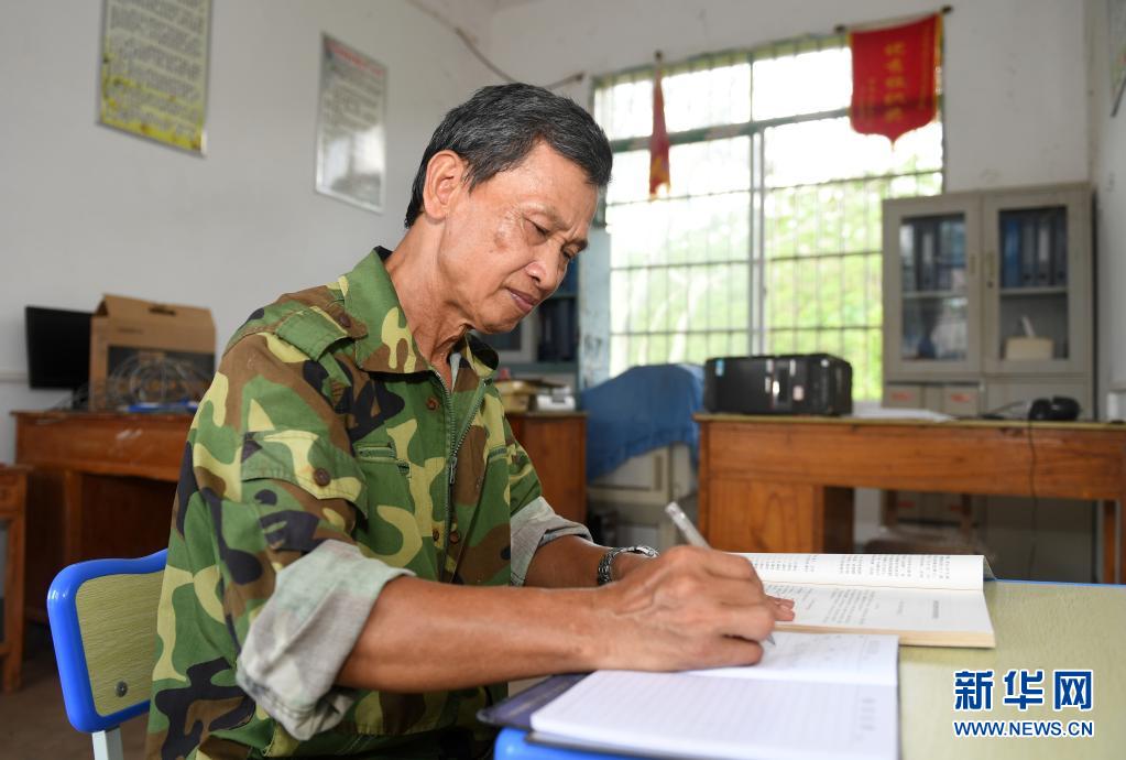 在广西上思县那琴乡中心小学逢通村教学点,梁志雄老师在办公室备课(6月16日摄)。新华社记者 陆波岸 摄