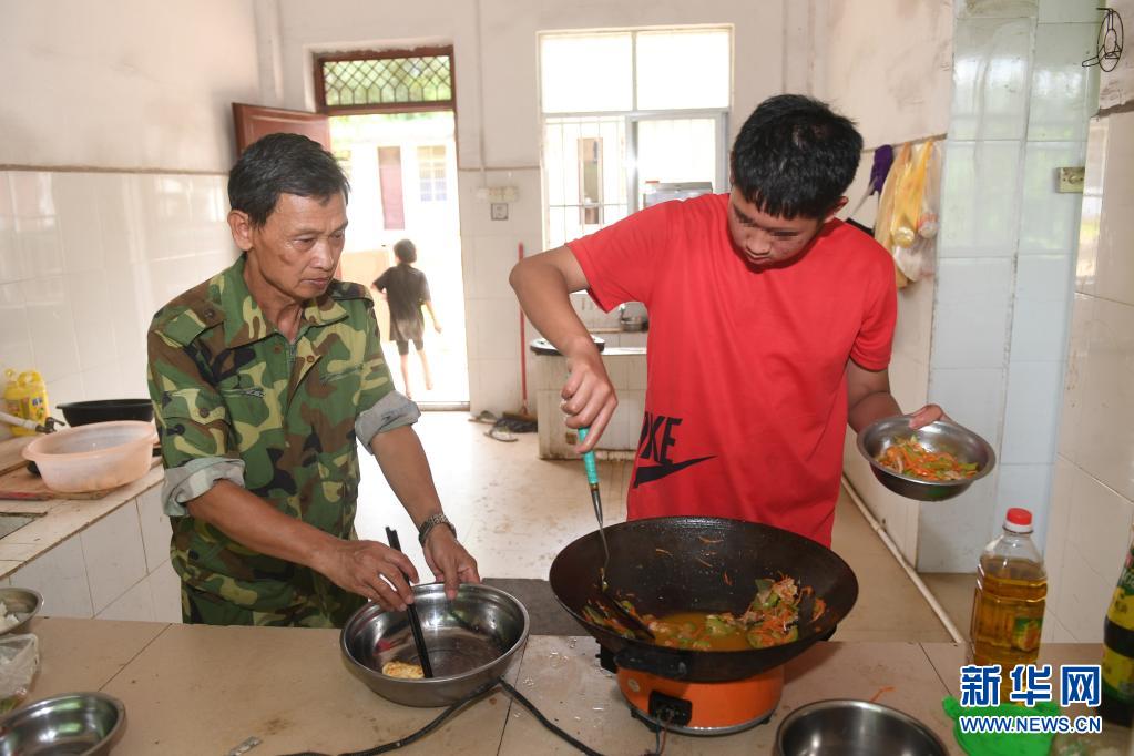 在广西上思县那琴乡中心小学逢通村教学点,梁志雄老师在给学生做午饭(6月16日摄)。新华社记者 陆波岸 摄