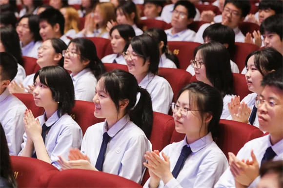 在与学生的问答环节中,杨扬从一个母亲的角度出发,认为支持孩子运动的最好方式是自己也去体验这项运动。她表示,体育是很好的家庭纽带,建议大家邀请父母一起参与自己喜欢的运动,这样的亲子互动将会成为一生宝贵的回忆。