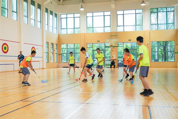 学校还将冰雪运动融入日常课程,定期开展“融合旱地冰球”普特融合志愿服务项目,邀请辅读学校的学生共同进行旱地冰球活动,以体育课程为载体,两校学生一起锻炼体魄、磨炼意志,让更多青少年分享、领略冰雪运动的无限魅力。